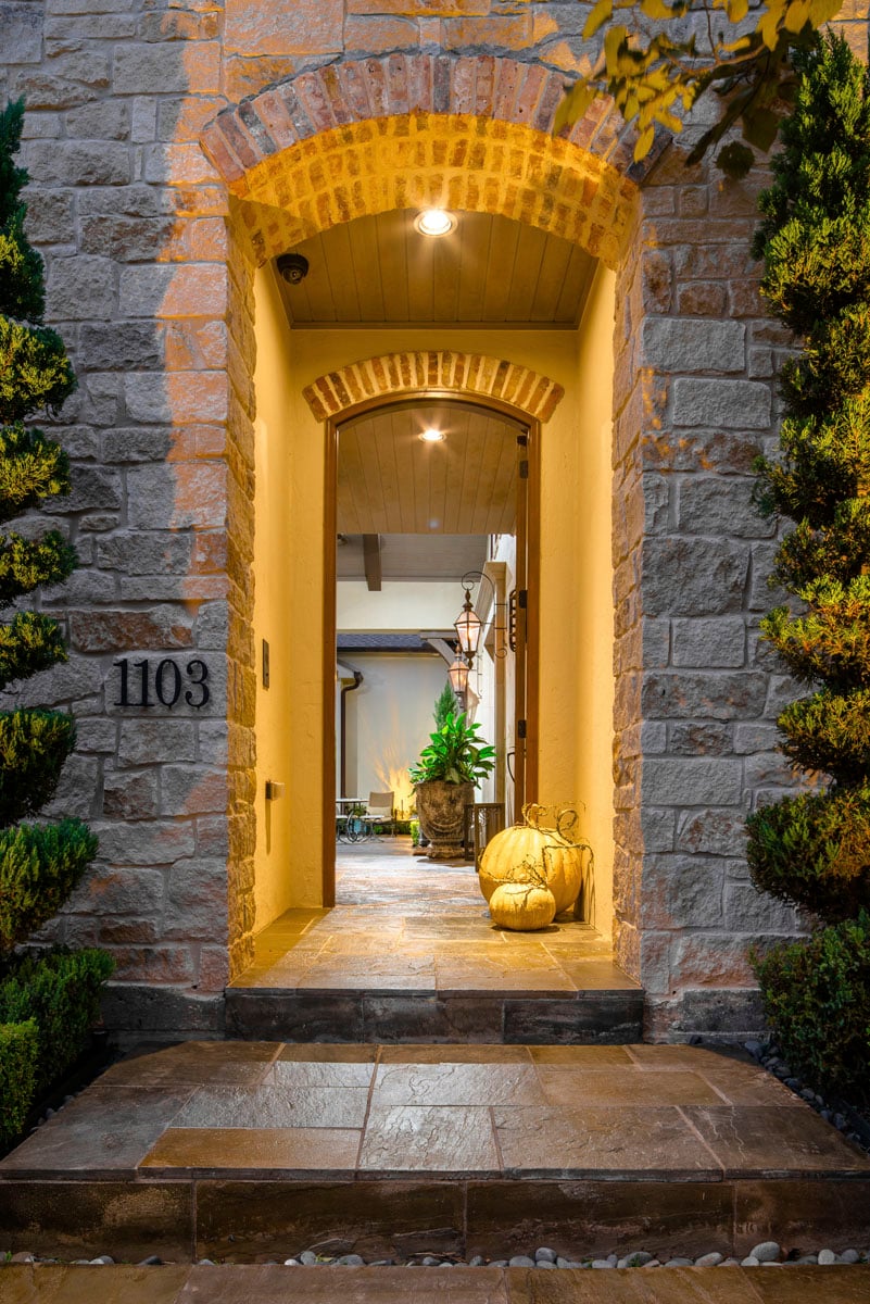 This home was designed and built for an empty nester couple who wished to downsize and simplify their lifestyle. The home features a mix of textures including buff limestone, Old Chicago antique brick, cut limestone and stucco. It offers an alluring walled courtyard with cocktail pool and a separate casita, which is used as a music studio. The house features a dedicated theatre, upstairs game room and bar, and a luxurious master suite downstairs.